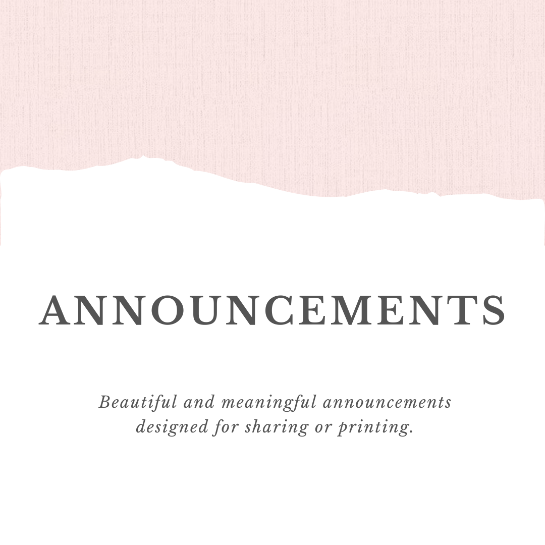 Share your special moments with custom announcements tailored to your journey. Whether celebrating new life or commemorating the memory of a precious angel, our thoughtful designs provide a heartfelt way to share your emotions with loved ones. Personalize your announcement with a custom design, making it uniquely yours. Let us handle the details, so you can focus on connecting with those who matter most.