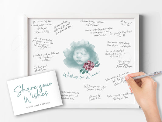 Baby Shower Guestbook Art with Flower Watercolor Ultrasound