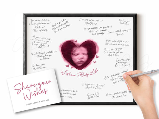Baby Shower Guestbook Art with Heart Watercolor Ultrasound