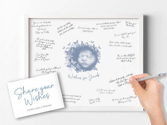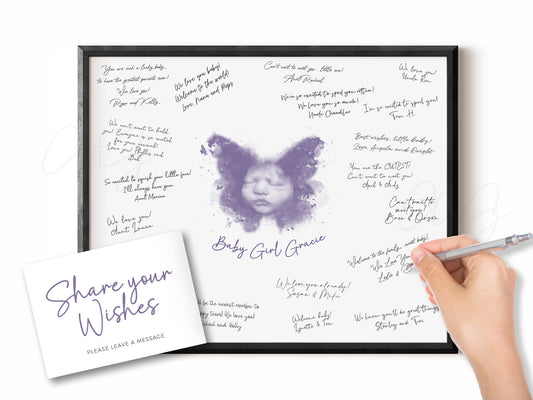 Baby Shower Guestbook Art with Butterfly Watercolor Ultrasound