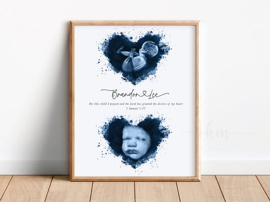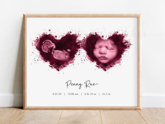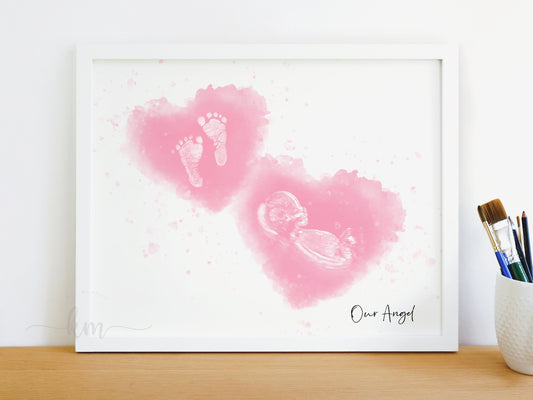 Baby Handprint or Footprint Art with Watercolored Ultrasound Heart