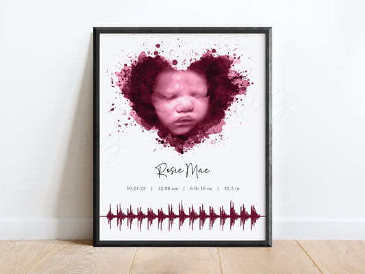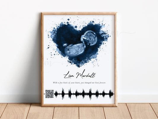 Splatter Heart Ultrasound Art with Baby Heartbeat & QR Code