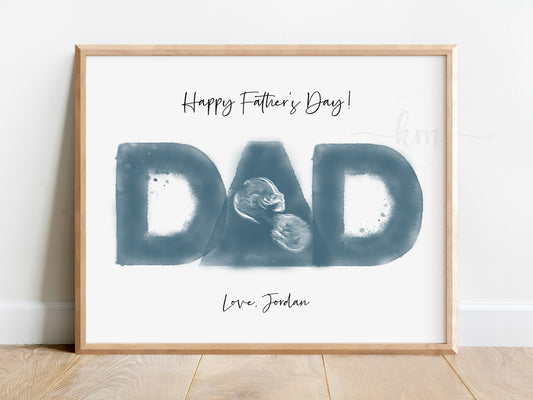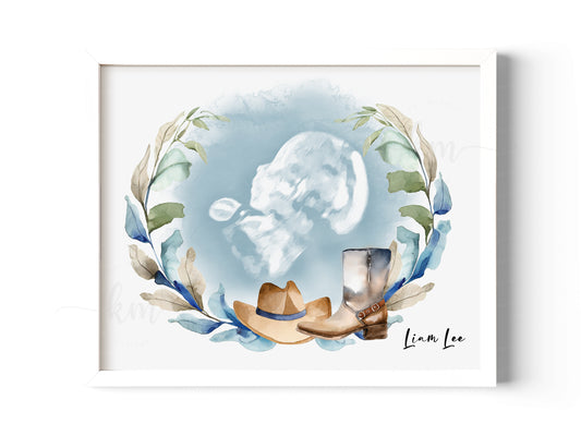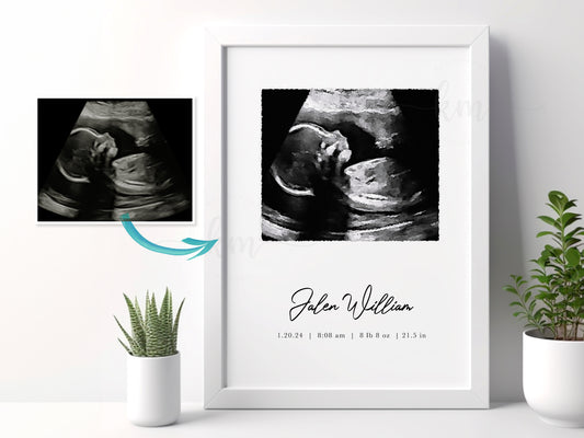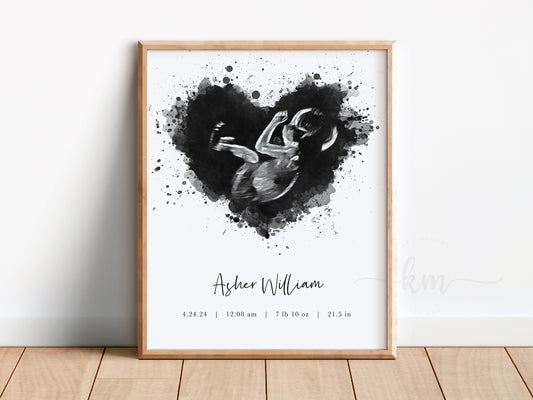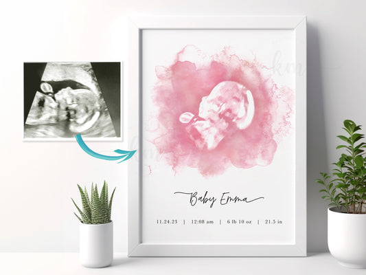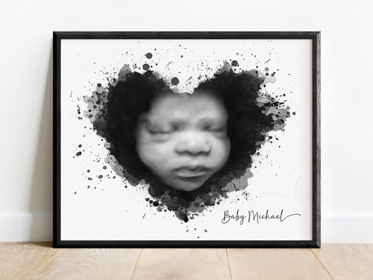 Hand-Painted Black & White Watercolor Ultrasound Art (Vertical)