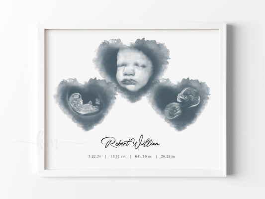 Baby Shower Guestbook Art with Hearts Watercolor Ultrasound