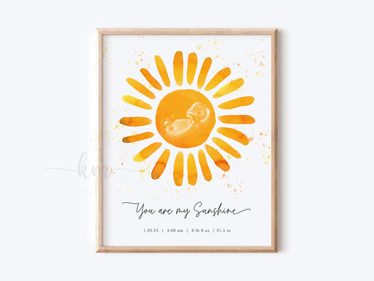 Baby Footprint Art with Watercolor Eucalyptus Wreath