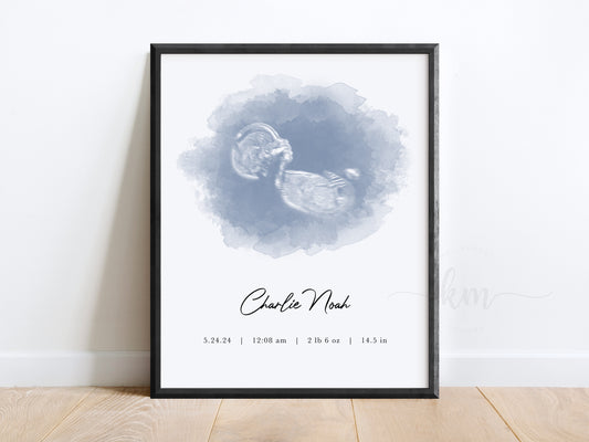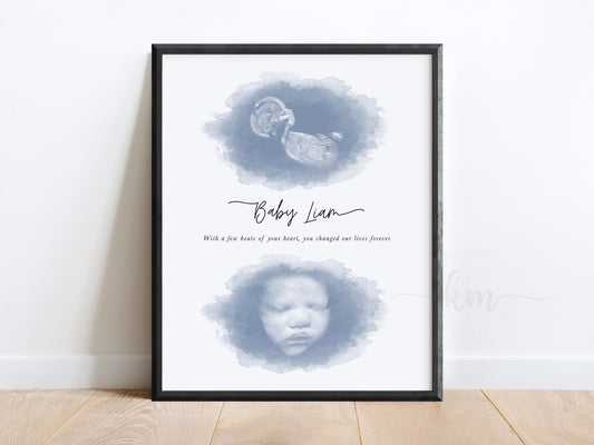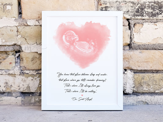 Infant Loss Heart Watercolor Ultrasound Art with Quote (Vertical)
