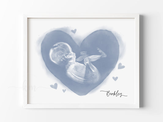 Rainbow Baby Heart Watercolor Ultrasound Art