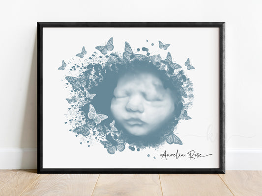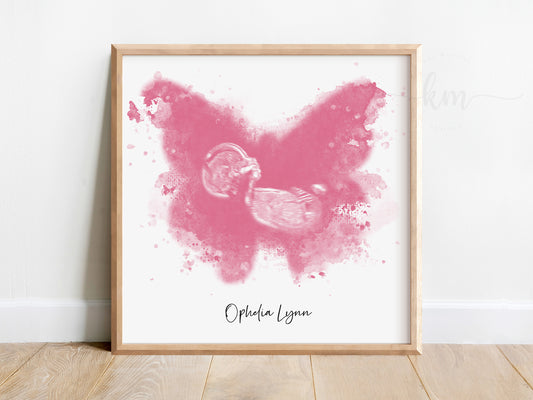 Butterfly Watercolor Ultrasound Art (Vertical)
