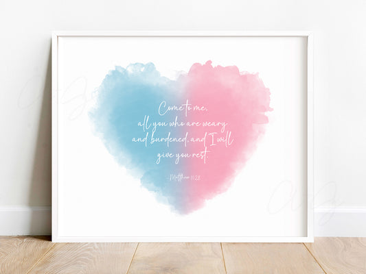 Come to me, all you who are weary and burdened – Matthew 11:28 Heart Scripture Art