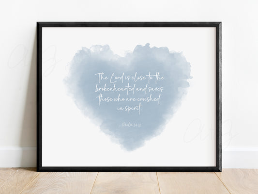 The Lord Is Close to the Brokenhearted – Psalm 34:18 Heart Scripture Art