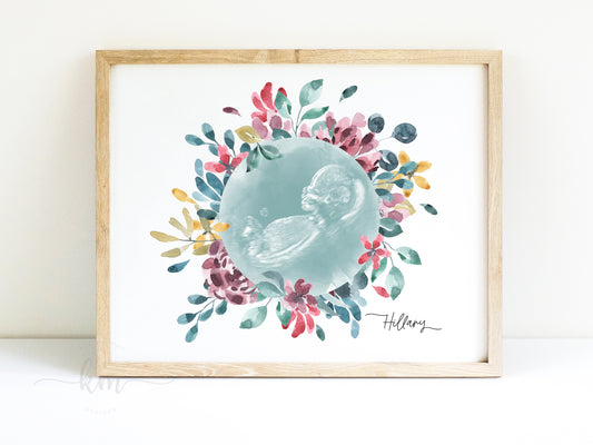 Baby Footprint Art with Boho Watercolor Wildflowers