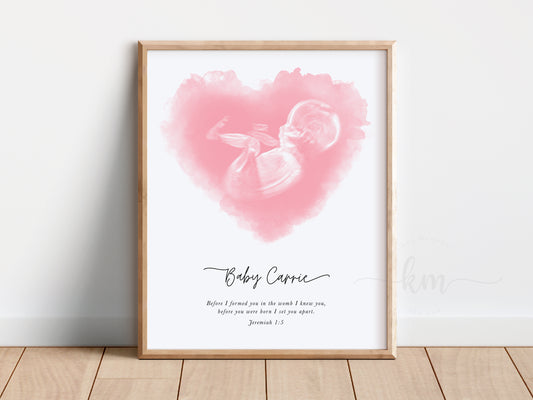 Heart Watercolor Ultrasound Art with Baby Heartbeat