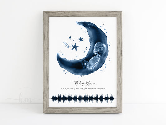 Moon and Stars Ultrasound Art with Baby Heartbeat