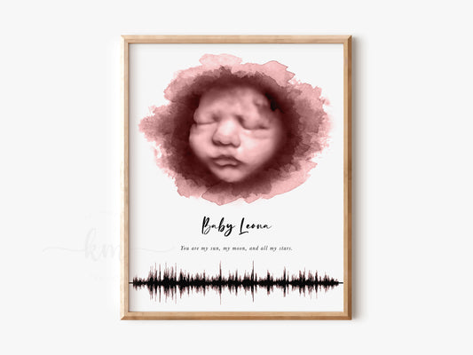 Oval Watercolor Ultrasound Art with Baby Heartbeat