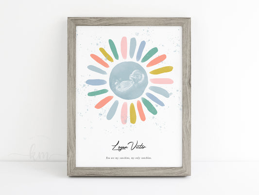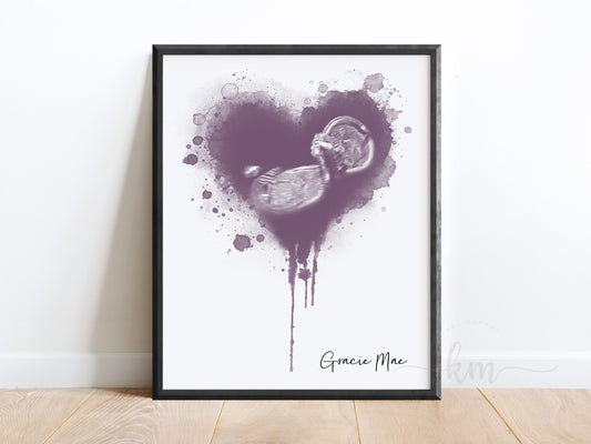 Baby Handprint or Footprint Art with Watercolored Ultrasound Heart (Vertical)