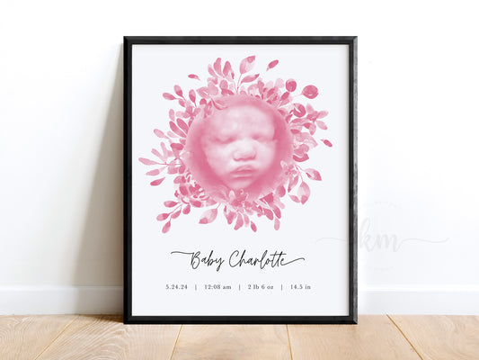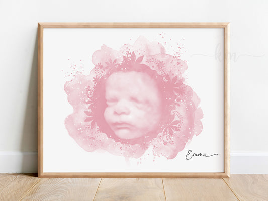 Floral Wreath Watercolor 3D Ultrasound Art (Vertical)