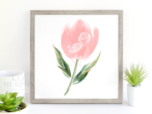 Baby Handprint or Footprint Art with Watercolored Ultrasound Heart