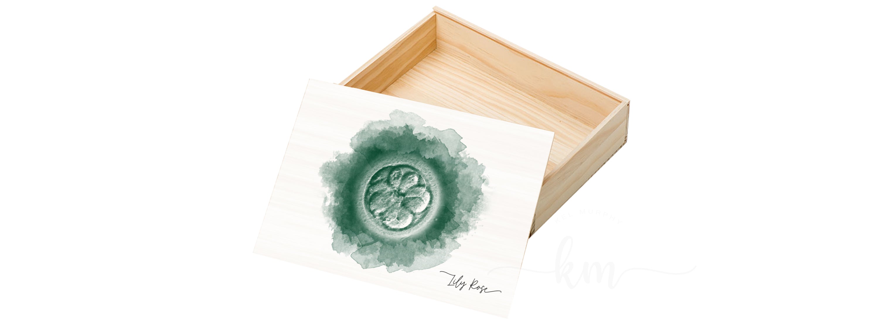 Keepsake Boxes are a meaningful way to preserve and honor your artwork. Whether it’s a gift for new parents, a couple walking through infertility, a way to memorialize a sweet angel baby, or a beautiful surrogate gift — each box is created with care to hold your most treasured memories.