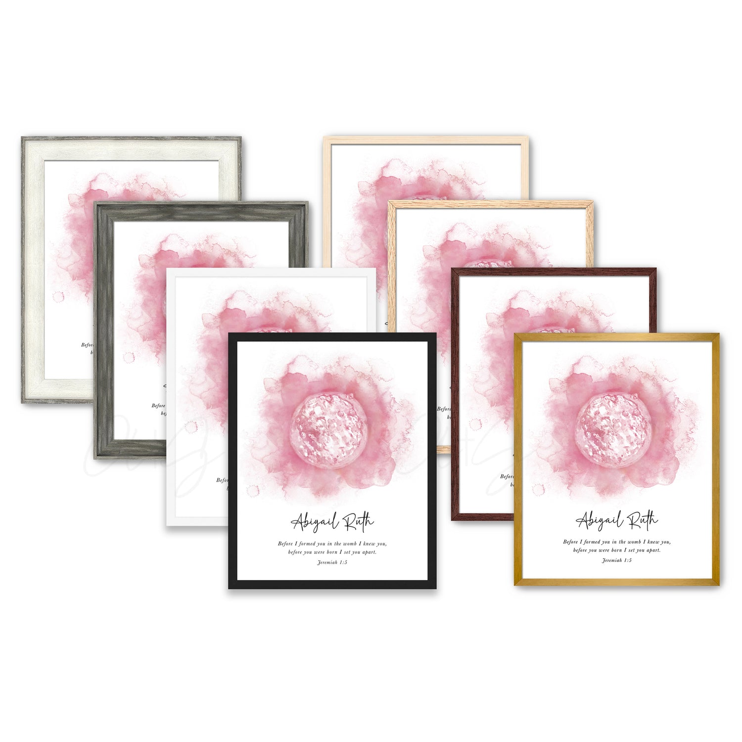 Your artwork is printed on luxurious 100% cotton watercolor paper, then professionally mounted on foam board and framed for a polished, ready-to-hang display. Each piece is backed with kraft paper, fitted with a wire hanger, and protected with a layer of shatterproof acrylic for lasting durability.