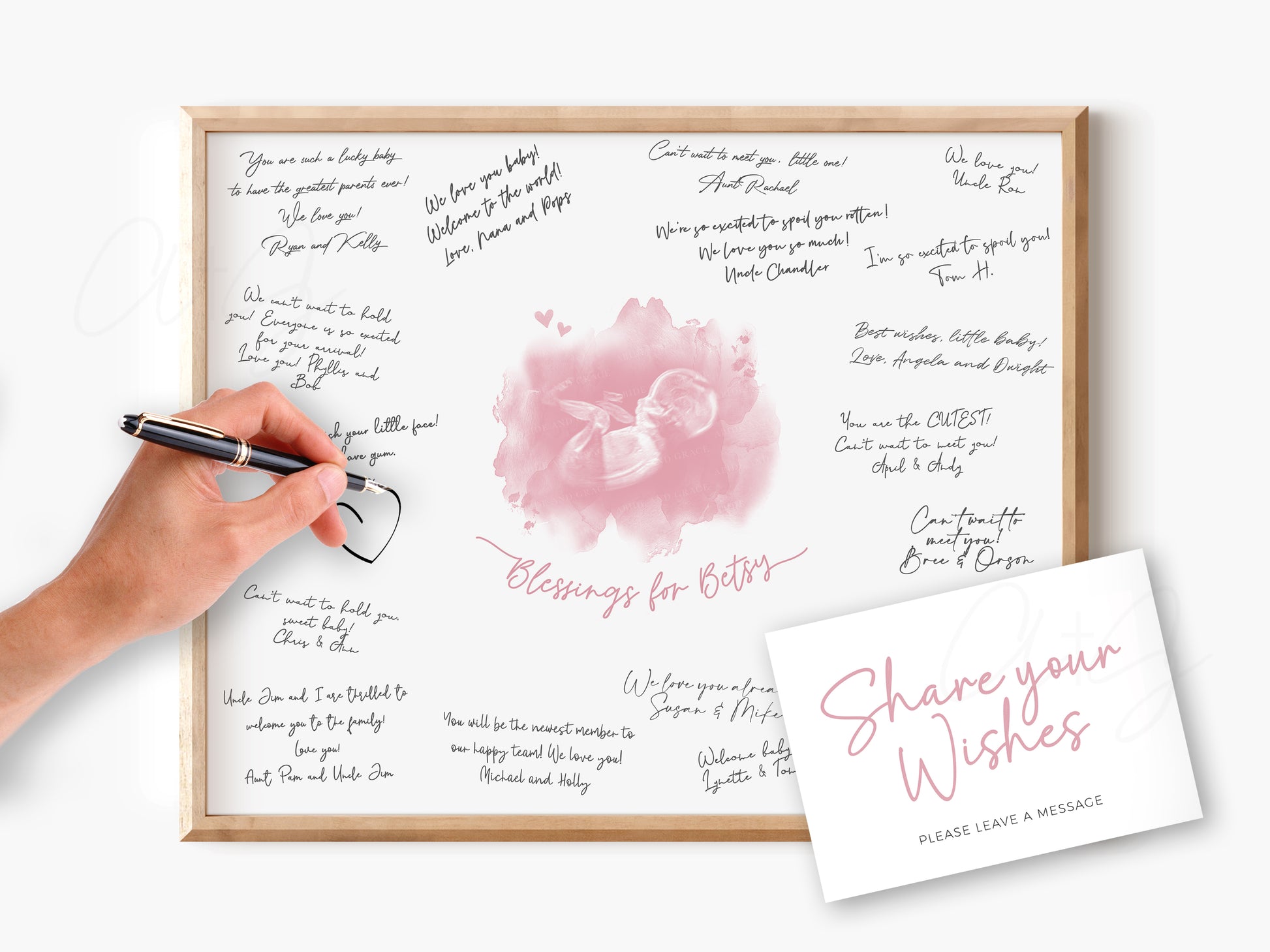 Create a lasting memory with our Baby Shower Guestbook Print — a unique guestbook alternative and thoughtful baby shower gift. This custom cloud and hearts watercolor ultrasound art preserves your baby's first image while inviting guests to leave heartfelt messages. A cherished keepsake and meaningful addition to your nursery, it features your baby’s ultrasound in our signature watercolor design and will be treasured for years to come.