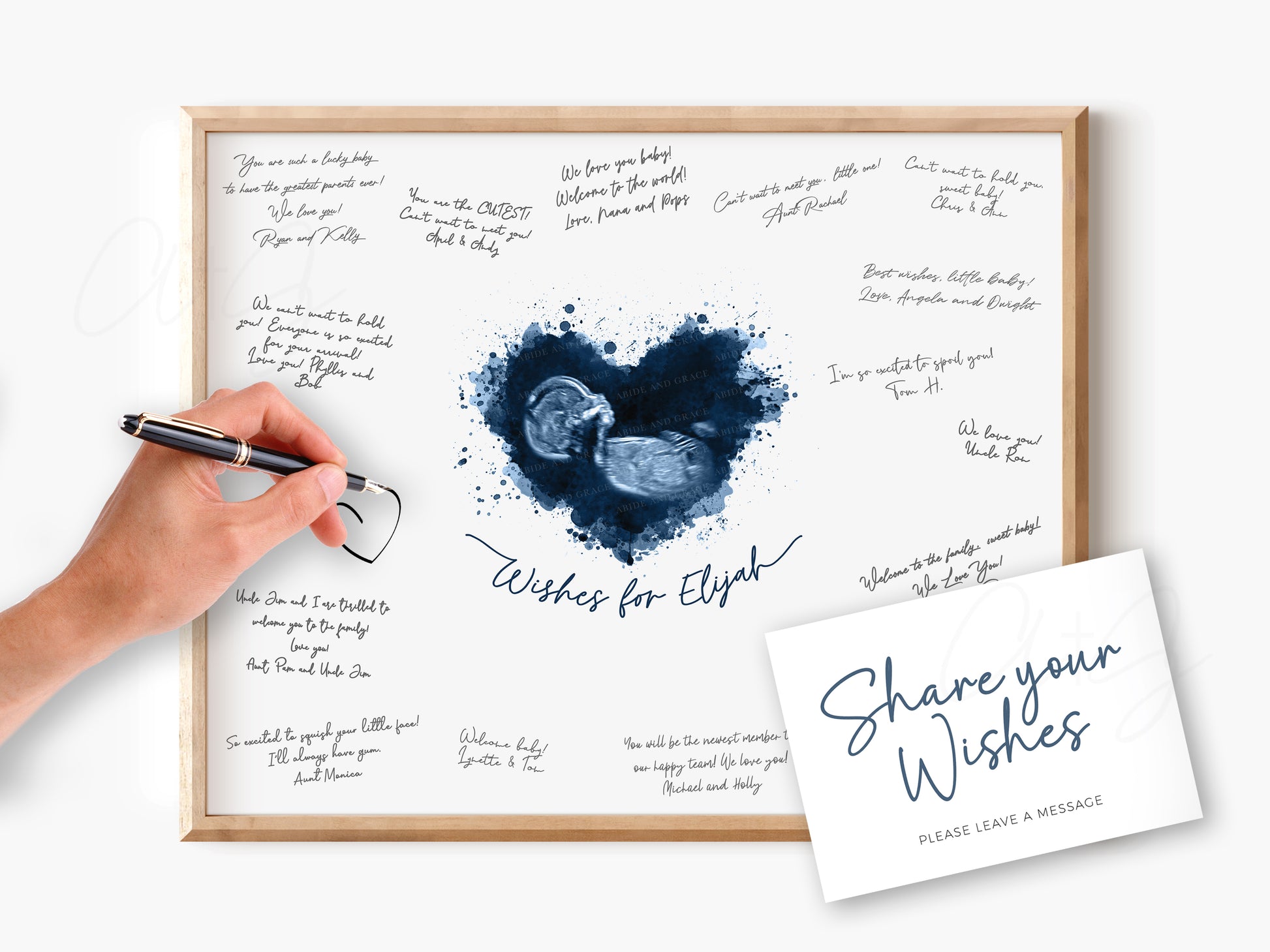 Create a lasting memory with our Baby Shower Guestbook Print — a unique guestbook alternative and thoughtful baby shower gift. This custom splatter heart watercolor ultrasound art preserves your baby's first image while inviting guests to leave heartfelt messages. A cherished keepsake and meaningful addition to your nursery, it features your baby’s ultrasound in our signature watercolor design and will be treasured for years to come.