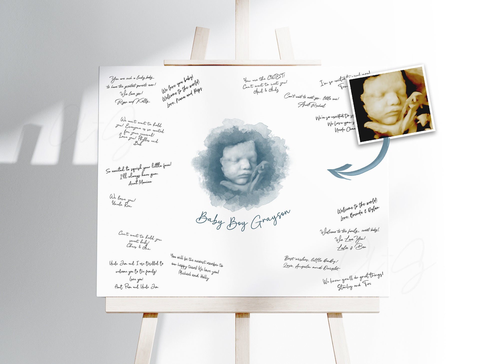 Create a lasting memory with our Baby Shower Guestbook Print — a unique guestbook alternative and thoughtful baby shower gift. This custom watercolor ultrasound art preserves your baby's first image while inviting guests to leave heartfelt messages. A cherished keepsake and meaningful addition to your nursery, it features your baby’s ultrasound in our signature watercolor design and will be treasured for years to come.