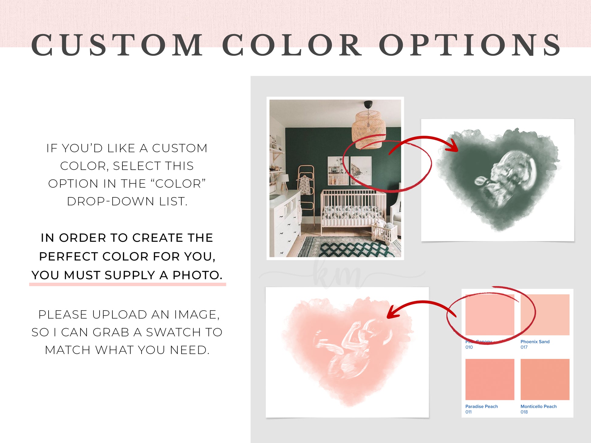 I was looking to do a watercolor ultrasound as our pregnancy announcement & we love how it turned out. Kel has great customer service. She was patient & helpful with me when I didn't like the original color I picked out. She provided me with options & wanted to make sure I was satisfied with it. Shipping was super fast too!